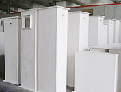 本公司研制生產的不燃型無機玻璃鋼通風管道,采用無機基料粘結劑及玻璃纖維布為增強材料,經建模、配料、糊制、排泡、固化時效等工序制作而成。具有質輕高強、耐水、耐老化、遇火不燃燒、無煙、無味、無毒及耐腐蝕等優點,從根本上解決了有機玻璃鋼易燃燒、鐵皮風道易腐蝕、使用壽命短的缺陷。廣泛應用于賓館、商場、紡織、化纖、石油化工、機械制造、儀表、電子、醫藥、煙草、食品、醫療、倉儲、寫字樓以及地鐵、人防、地下室等工程的送風、排風、排煙管道,尤其建筑中需要防火的通風管道。