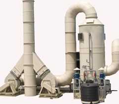 玻璃鋼洗滌塔是硫酸生產(chǎn)線的主要設(shè)備,該塔的主要作用是:由塔底進塔的帶有礦塵、砷、硒、氟、二氧化硫等雜質(zhì)和二氧化碳氣體,經(jīng)填料層,由塔頂排出。而稀硫酸通過塔頂?shù)膰娮靽娏埽怪盍蠈又袣庖撼浞纸佑|,除去雜質(zhì),達到凈化氣體的作用。